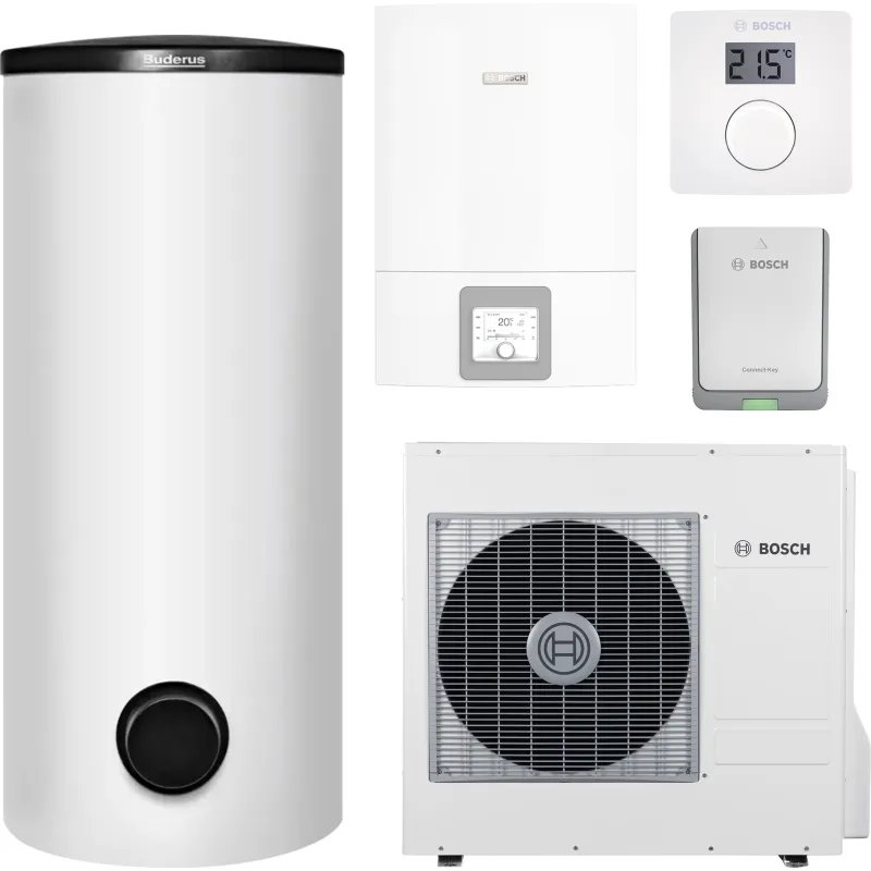 - інструкція, внутрішній блок, зовнішній блок, панель управління, комунікаційний модуль, комплект з кабелем електричним підігрівом конденсату, триходовий зонний клапан, водонагрівач, група безпеки для бойлера