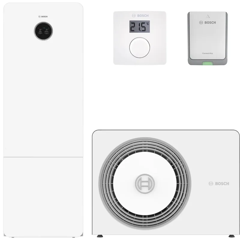 - інструкція, зовнішній блок, панель управління, комунікаційний модуль, комплект з кабелем електричним підігрівом конденсату, група безпеки для бойлера, внутрішній блок із бойлером із нержавіючої сталі, трубка для рециркуляційної лінії до теплового насосу