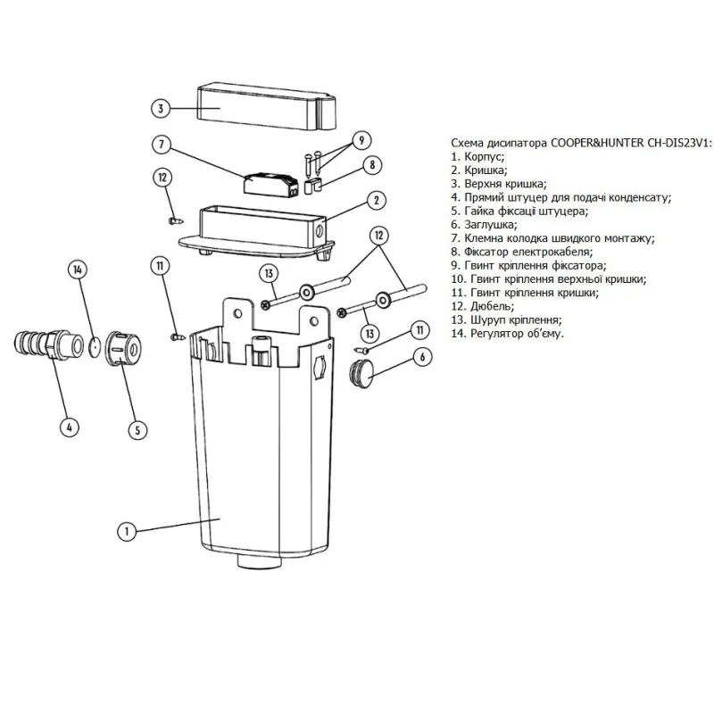 Опис Випарник конденсату кондиціонера Cooper&Hunter CH-DIS23V1 (White)