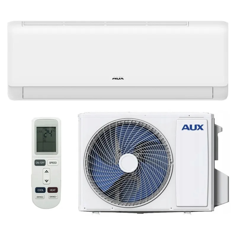 Система бренду AUX кріпиться на стіну. Внутрішній блок необхідно кріпити з відступами від стін і стелі, рекомендованими в інструкції. Є можливість послідовного підключення декількох блоків. Зовнішній блок закріплюється на фасаді.