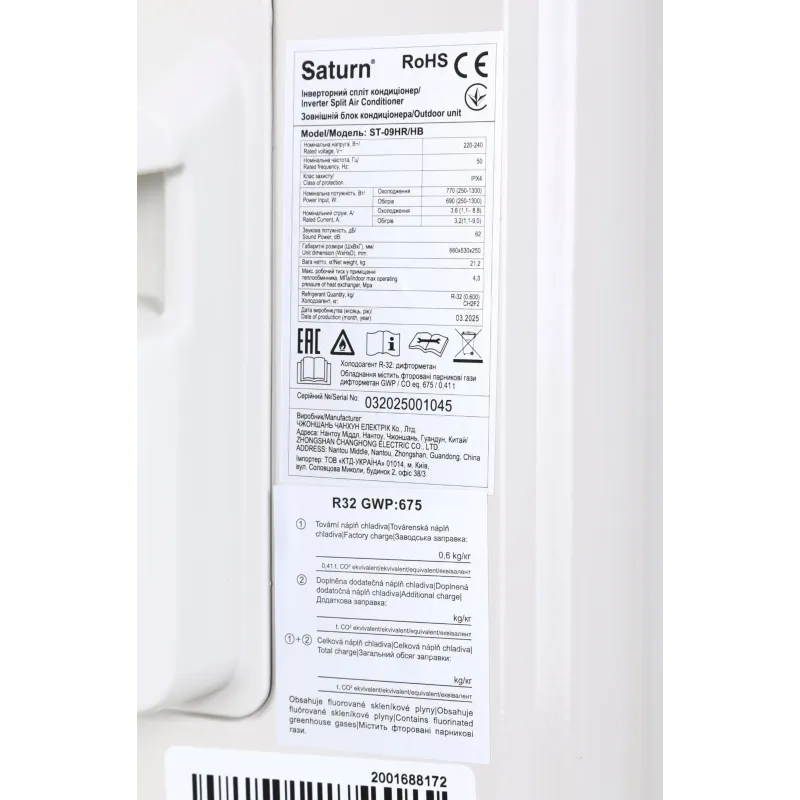 Для вашої зручності, запропонований у продажу кондиціонер Saturn ST-09HR/HB має: