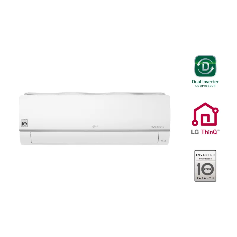 DUAL Inverter Compressor™ - запатентована технологія, що забезпечує зниження енерговитрат на 70%, більш тиху і ефективну роботу, швидкий вихід на цільові показники температури. Компанія LG надає 10 років гарантії на компресор.