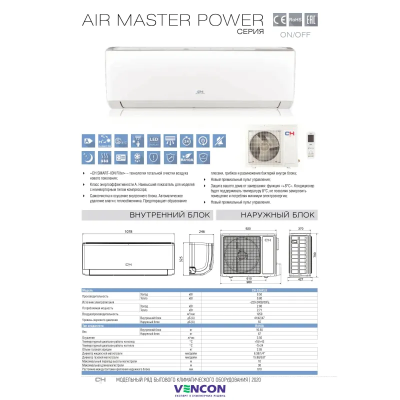 - Рівень шуму зовн. блоку