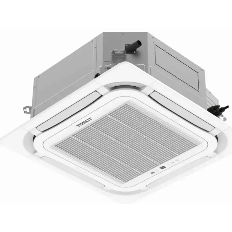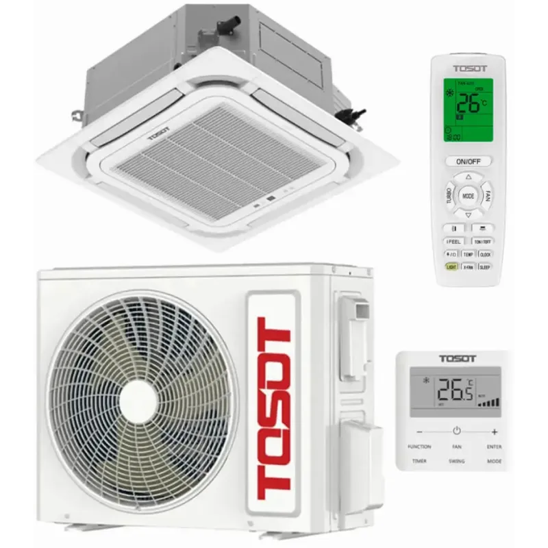 Зовнішній блок моделі бренду Tosot встановлюється на фасаді будівлі. Внутрішній касетний модуль монтується в підвісну стелю. Така особливість приховує непривабливі внутрішні елементи й не порушує естетичність інтер'єру.