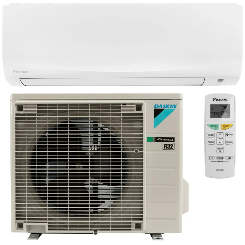 - Зовнішні блоки Daikin акуратні і міцні, їх можна легко встановити на даху або терасі, або просто розмістити на зовнішній стіні будинку.
