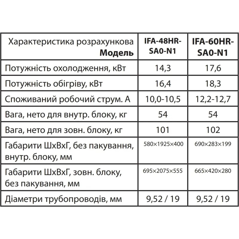 Опис Кондиціонер спліт-система Idea IFA-48HR-SA0-N1