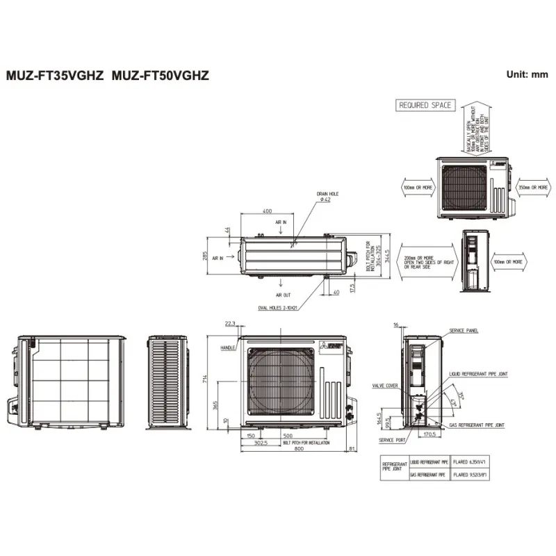 - Діаметр труб (рідина / газ)