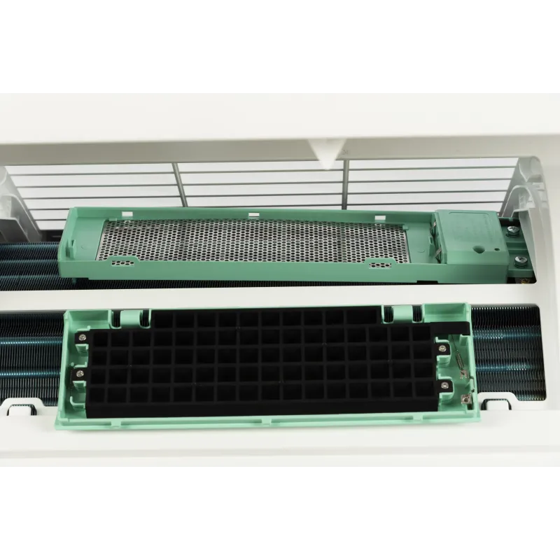 - Зовнішній блок з покриттям Green Fin захищений від агресивного впливу навколишнього середовища і оснащений технологією інтелектуального розморожування теплообмінника і піддону.