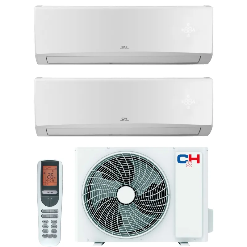 Мульти-спліт система Cooper&Hunter Alfa Inverter Multi 14 (7+7) представлена набором із двох внутрішніх блоків та одного зовнішнього модуля. Цей комплект призначений для створення комфортного мікроклімату у двох кімнатах площею до 20 м2 кожна. Купити комплект мульти-спліт системи Cooper&Hunter Alfa Inverter Multi 14 (7+7) рекомендується для встановлення в заміських будинках та котеджах без можливості встановлення двох зовнішніх елементів.