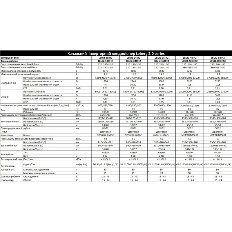 Кондиціонер спліт-система Leberg LBDI2-36IH2/LBUI2-36OH2