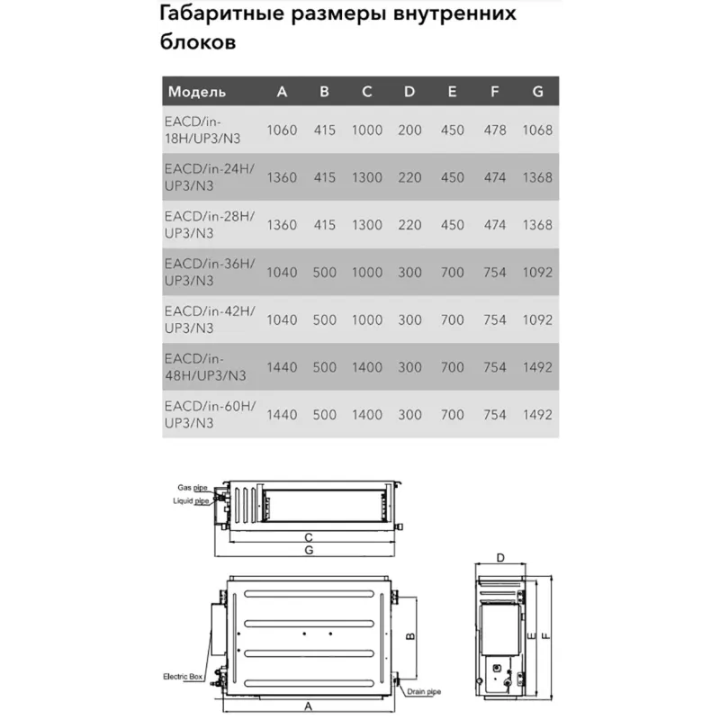 - Вага внутрішнього блоку