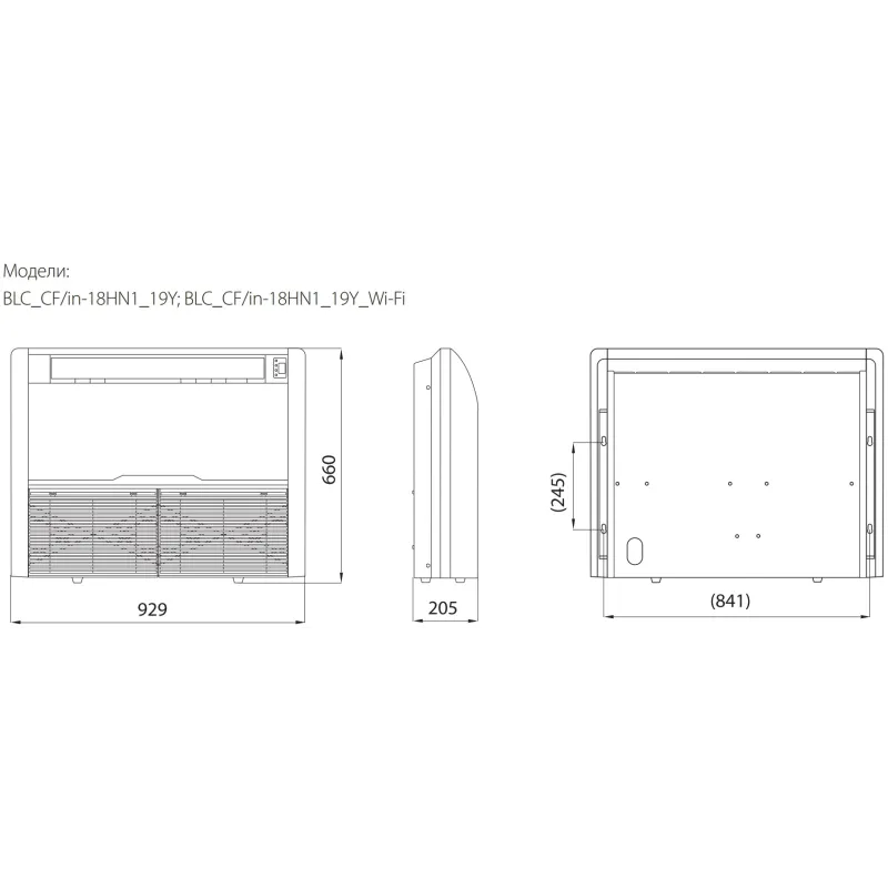 - Ширина зовнішнього блоку