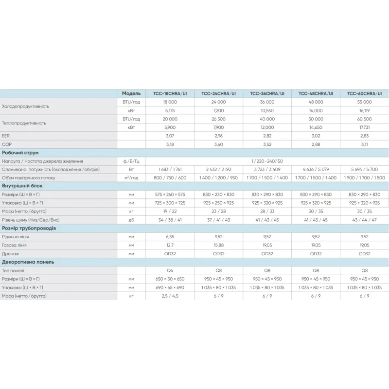 - Витрата повітря внутрішнього блоку