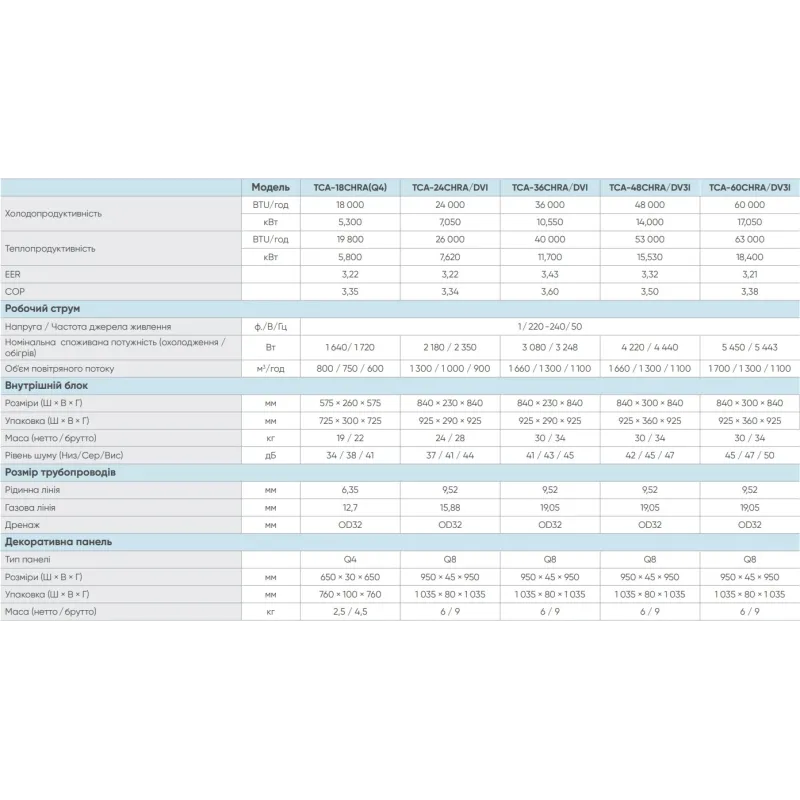 - Витрата повітря внутрішнього блоку