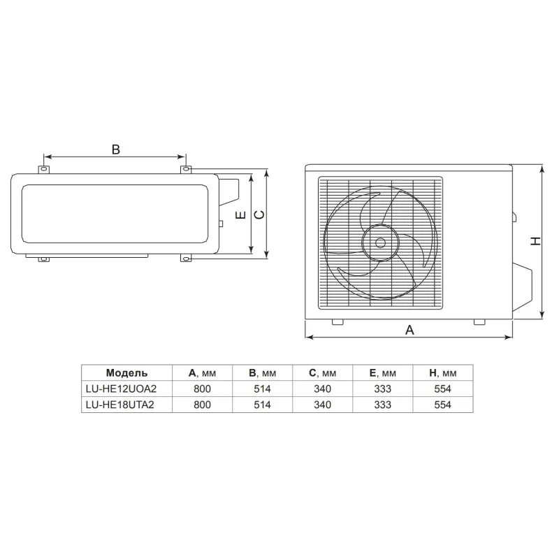 - Висота зовнішнього блоку