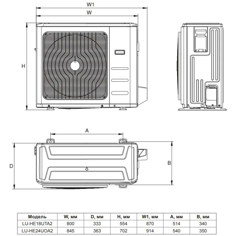 - Висота зовнішнього блоку