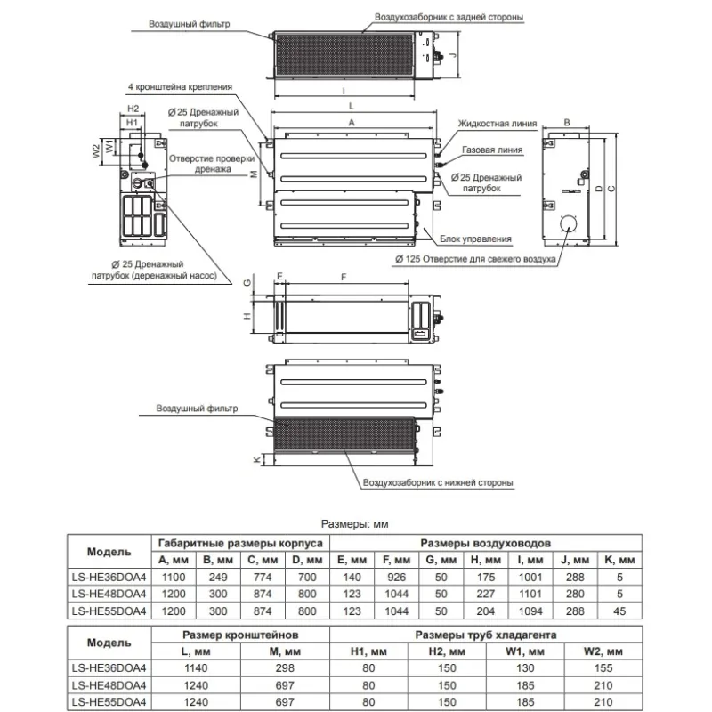 - Ширина зовнішнього блоку