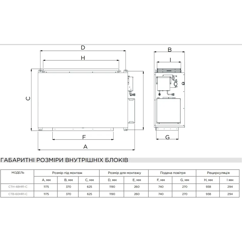 - Вага внутрішнього блоку