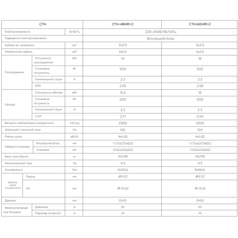- Рівень шуму зовн. блоку