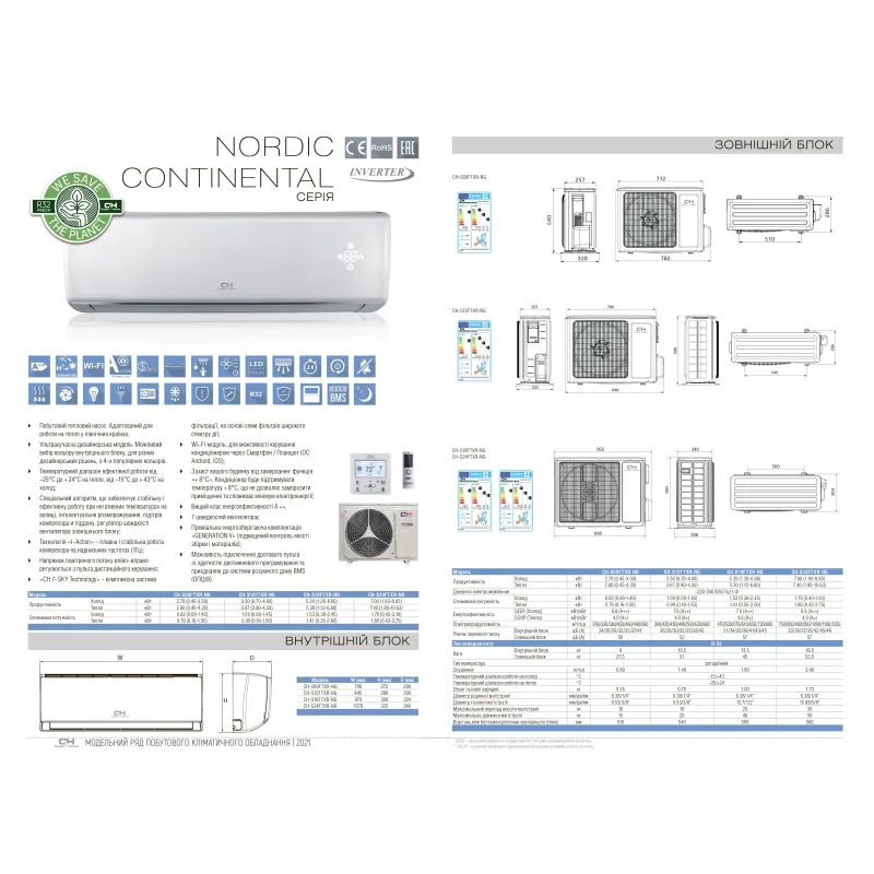 Cooper&Hunter Nordic Continental CH-S12FTXR-NG - пристрій для створення і підтримки необхідного мікроклімату в приміщеннях житлового фонду, на комерційних об'єктах і в місцях загального користування. Тепловий насос підходить для квартир, будинків, офісів, готелів, кафетеріїв, навчальних і спортивних центрів, соціальних служб, торгових залів тощо.