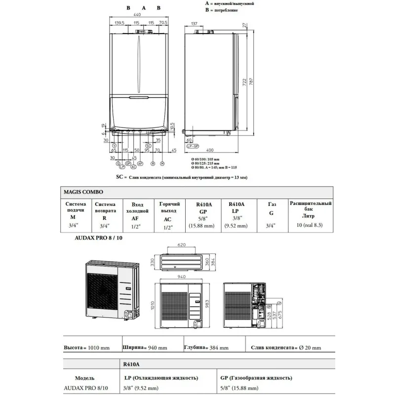 - Висота зовнішнього блоку