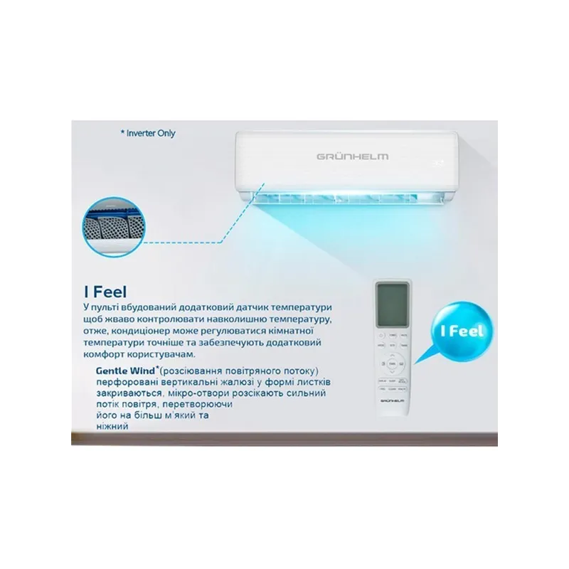 Кондиціонер спліт-система Grunhelm Inverter GAC-12GH-IWF-TPRO-32 – найкраще рішення для м'якого та рівномірного розподілу повітря