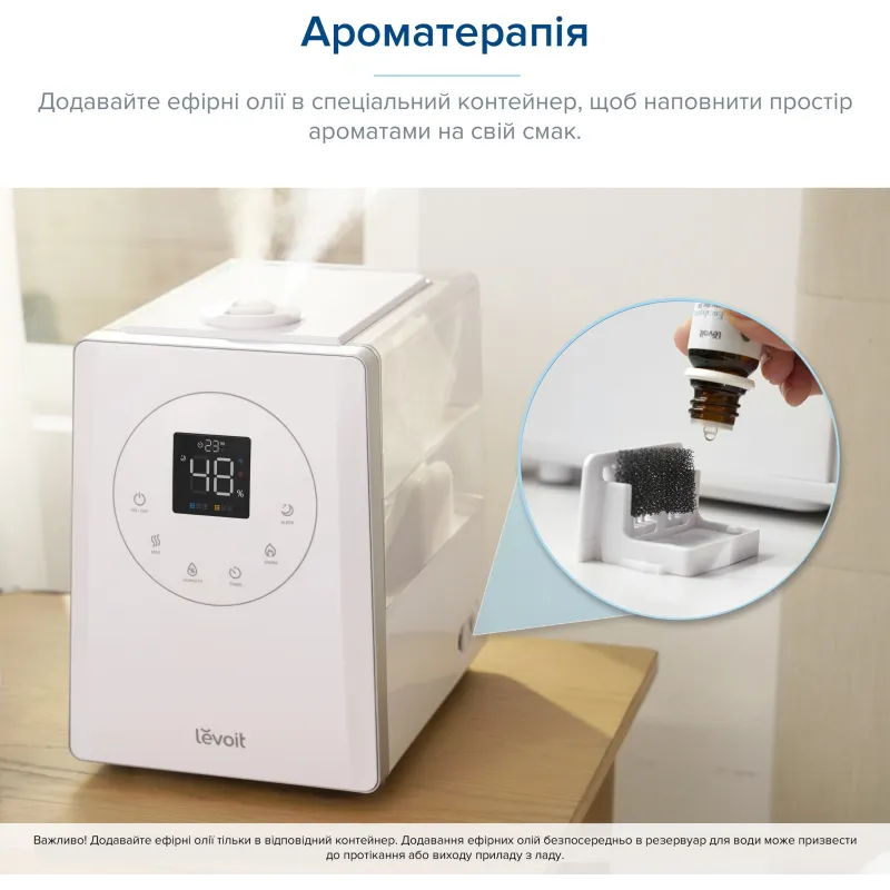 Levoit - бренд, якому довіряють. Модель сертифікована ETL, FC і виготовлена без використання токсичних домішок (BPA Free).