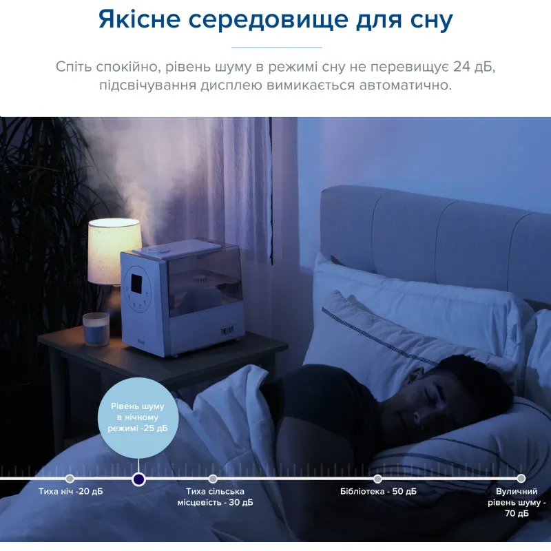Очищувач підходить для активної роботи вночі, адже з рівнем шуму всього до 25 дБ він не потривожить ваш сон.