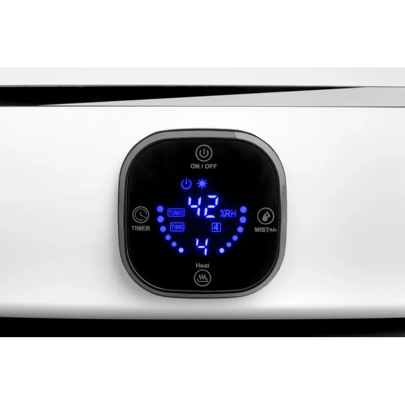 Сенсорна панель управління нового покоління з пультом дає змогу легко налаштовувати пристрій. Зволожувач має високу потужність і 1 стандартну швидкість, для зручності він оснащений таймером, який можна запрограмувати на автоматичне вимкнення. Якщо в резервуарі закінчується вода, ви отримаєте звукові сигнали.
