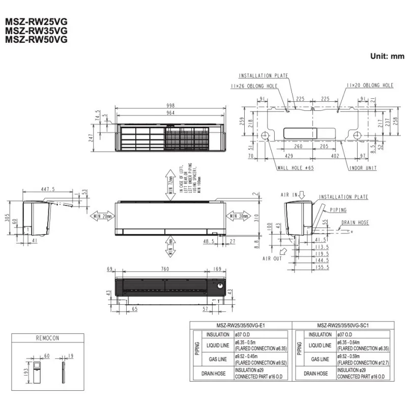 - Вага внутрішнього блоку