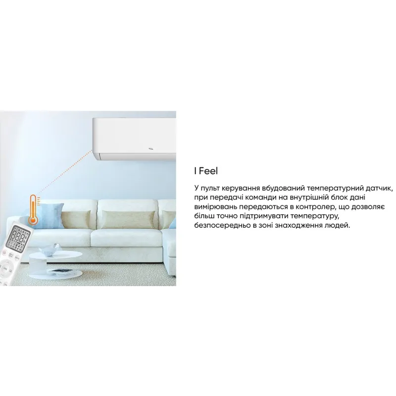 Ціна кондиціонера спліт-системи TCL Ocarina BreezeIN TAC-18CHSD/TPH11IHB Heat Pump Inverter R32 WI-FI аргументована зручним управлінням за допомогою дистанційного пульта (ДУ). Завдяки підсвічуванню ним легко користуватися вночі. Температурний датчик I Feel передає дані на внутрішній модуль для підтримки необхідного мікроклімату точно в місці знаходження людей. За допомогою IoT Wi Fi доступне голосове керування побутовою технікою через додаток TCL Home.
