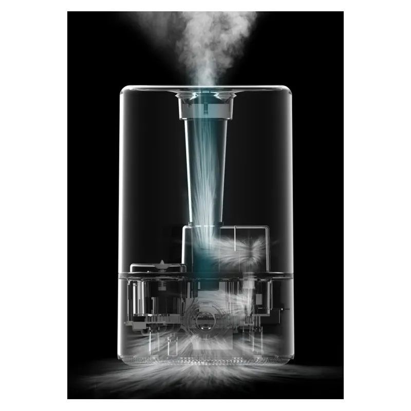 Під дією ультразвукових хвиль, рідина в зволожувачі перетворюється в дрібнодисперсний пил, яка через спеціальні канали розсіюється по кімнатах, забезпечуючи рівномірне зволоження. При цьому дрібні крапельки і білий наліт не осідає на поверхнях.
