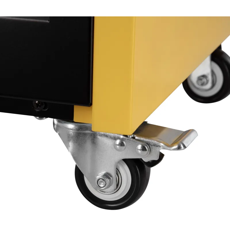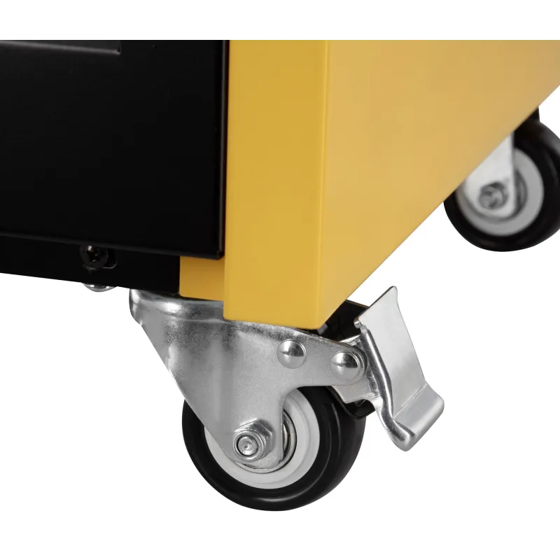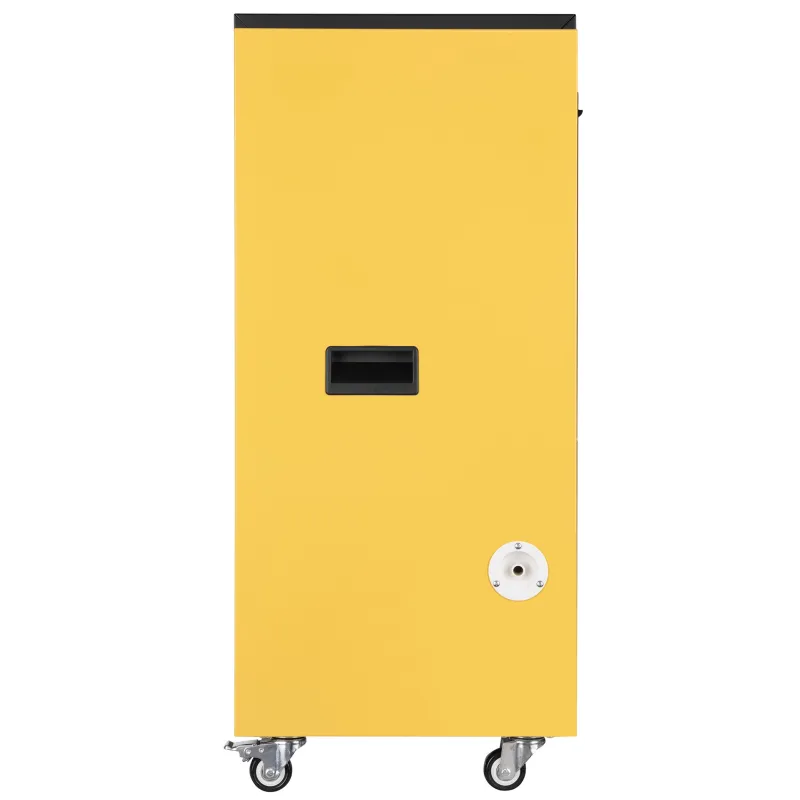Герметичність конструкції захищає від потрапляння на внутрішні елементи пилу та води. На фото видно великі колеса і зручну ручку для легкого транспортування пристрою.