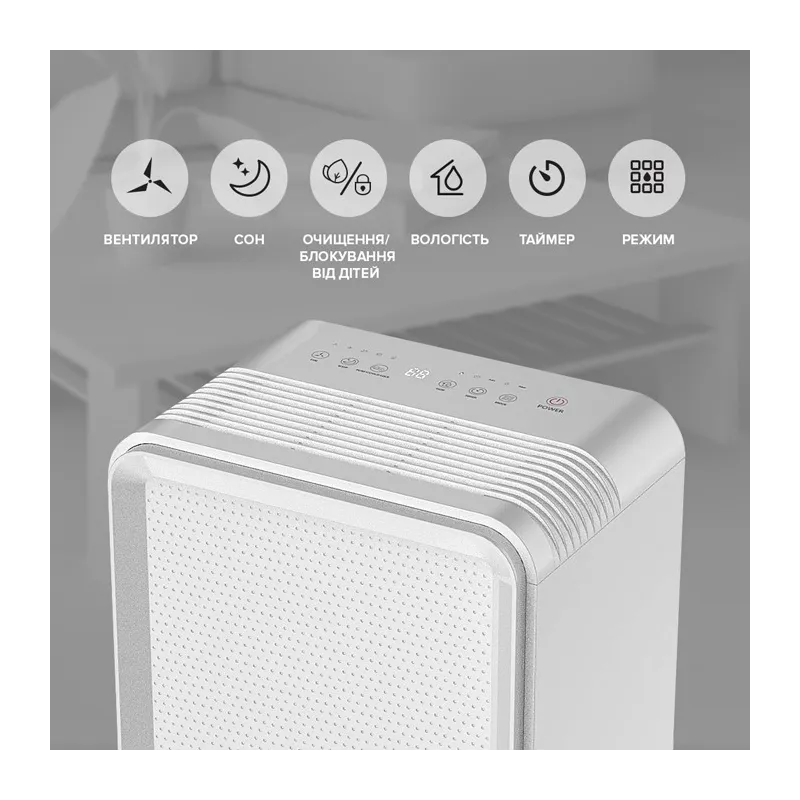 - Блокування від дітей. Панель управління можна заблокувати. При натисканні на кнопку PURIFY/CHILD-LOCK протягом 3 сек ви знову розблокуєте пристрій.
