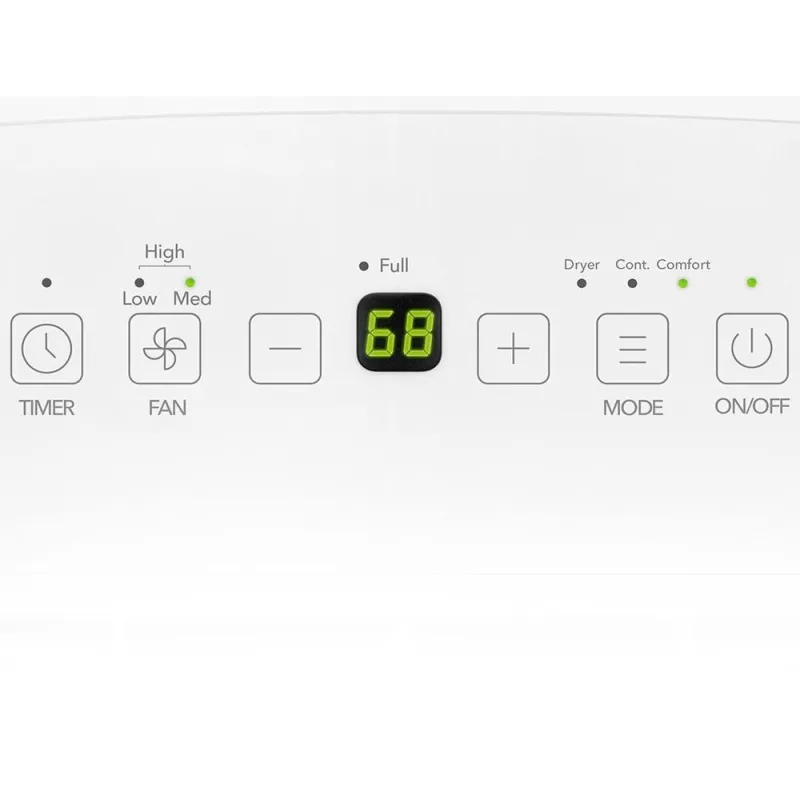 - ручка для перенесення, таймер, збирання конденсату в бак, індикатор заповненості резервуара для конденсату, авторозморожування, колеса, вбудований гігростат, автовідключення при заповненні контейнера, авторестарт, функція сушіння білизни, функція вибігу вентилятора, кнопка комфорту