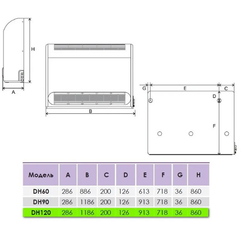 - дисплей, авторозморожування, вбудований гігростат, повітряний фільтр, дренаж, регулювання швидкості, таймер вимкнення, пульт ДУ