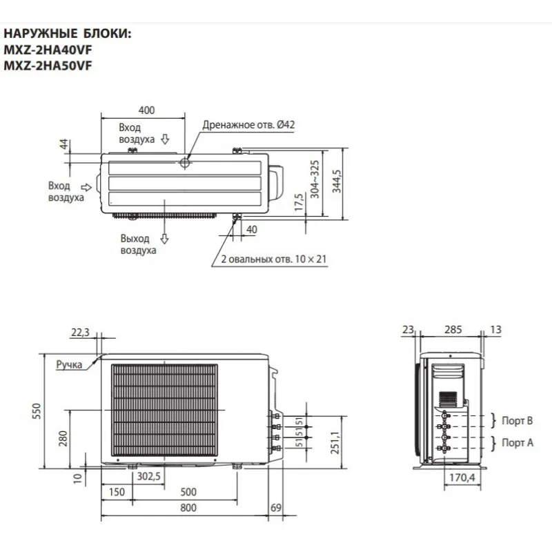 - Ширина зовнішнього блоку