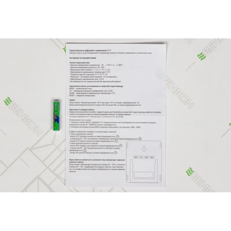 Термогігрометри T-17 - допомагає відслідковувати дані про домашнє мікрокліматі. На екрані пристрою відображаються не тільки інформація про температуру і вологість, але і поточний час.
