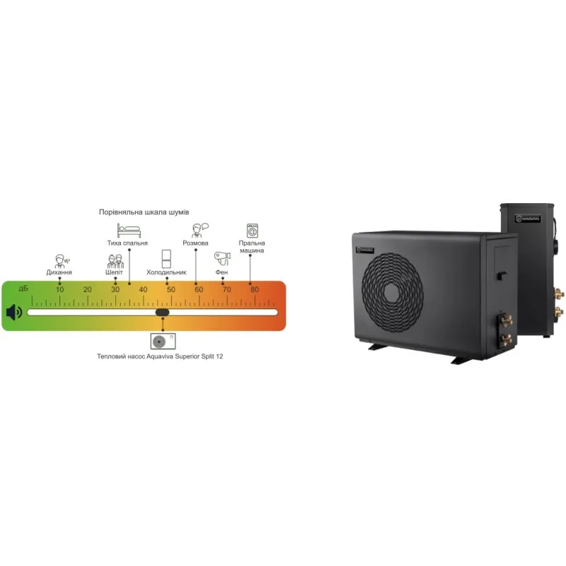 - Ціна теплового насоса Aquaviva Superior Split 12 (AVSP-FI12RWSplit) включає його обладнання інверторним компресором, який не тільки споживає мало енергії в процесі роботи, але й працює тихіше за ваш холодильник. Ви точно оцінка гідно низький рівень шуму під час вашого відпочинку.