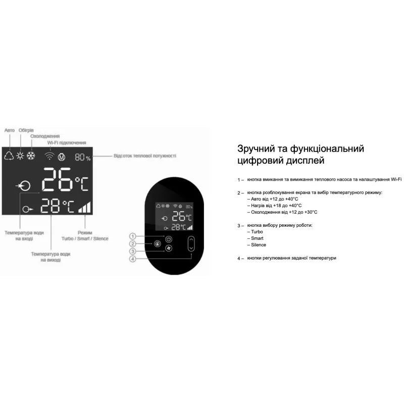 - Режим Smart автоматично балансує потужність і енергоспоживання, підтримуючи оптимальні параметри без втручання користувача.