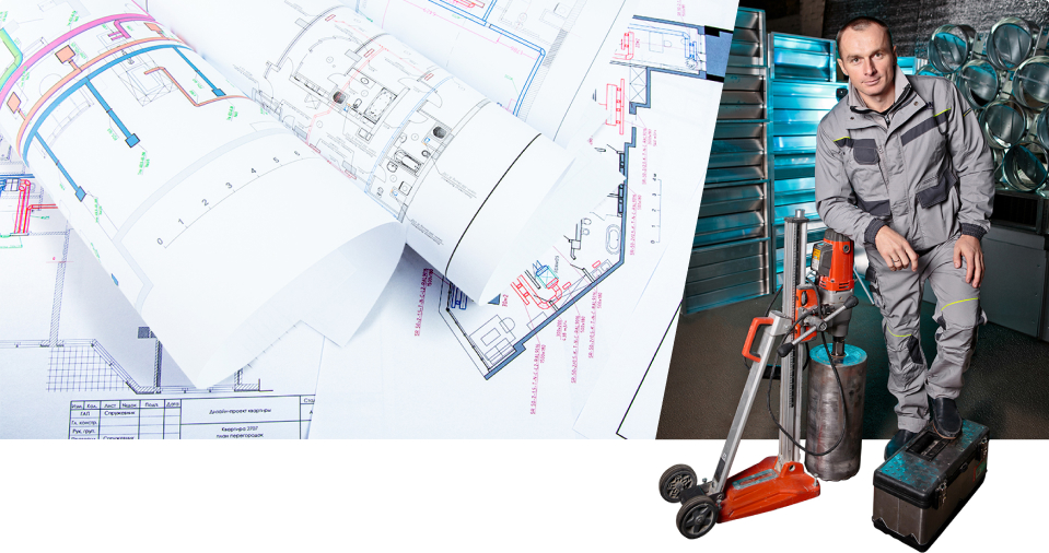 - Пробивання отворів і штроблення під траси і кабелі.