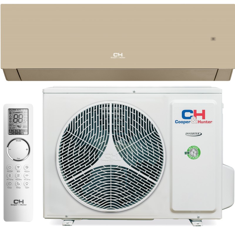Cooper&Hunter Majesty CH-S09FTXAM-GD — довговічний тихий кондиціонер з інверторним компресором та настінним розміщенням внутрішнього блоку, працює при температурі від -25 °C до +50 °C. Розрахований на встановлення у приміщенні площею 27 м2, його охолодження або обігрів. Ви можете купити кондиціонер спліт-систему Cooper&Hunter Majesty CH-S09FTXAM-GD для вентиляції та фільтрації повітря. Завдяки іонізації останній стає корисним здоров'ю.