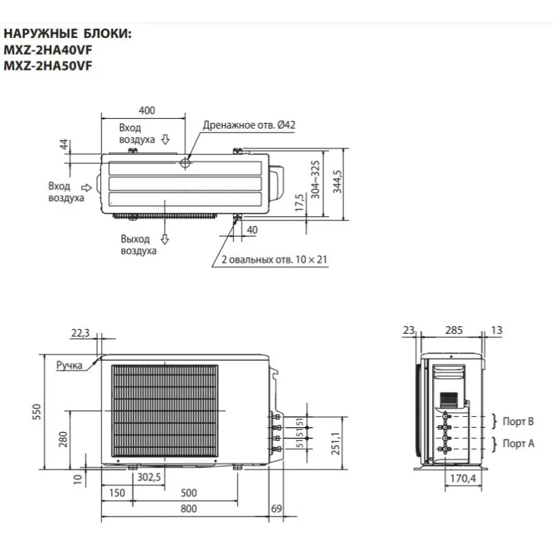 - Ширина наружного блока