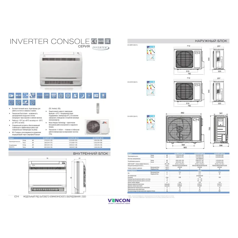 - Высший класс энергоэффективности А: EER~3,93; C.O.P. 4,10;