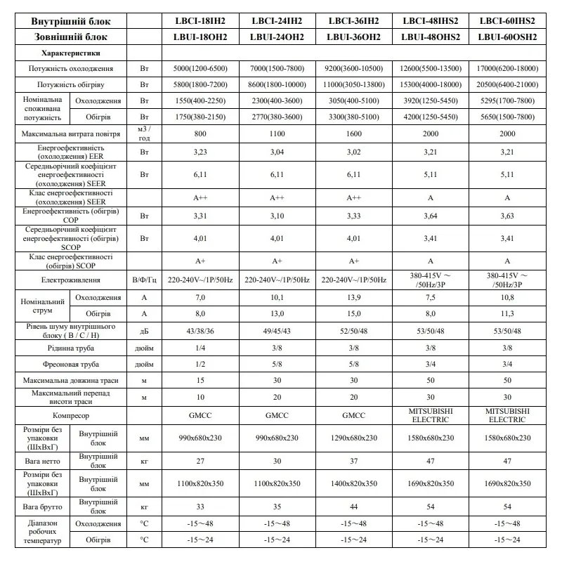 Кондиционер сплит-система Leberg LBCI-18IH2/LBUI-18OH2