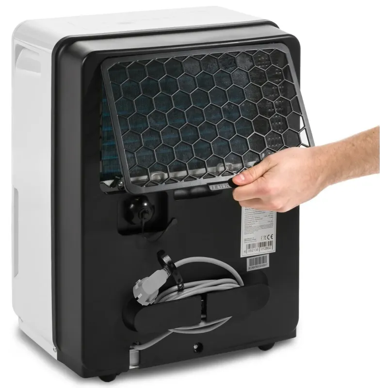 - ручка для перенесення, таймер, індикатор заповненості резервуара для конденсату, авторозморожування, вбудований гігростат, автовідключення при заповненні контейнера, авторестарт, функція сушіння білизни, система самодіагностики несправності, функція вибігу вентилятора