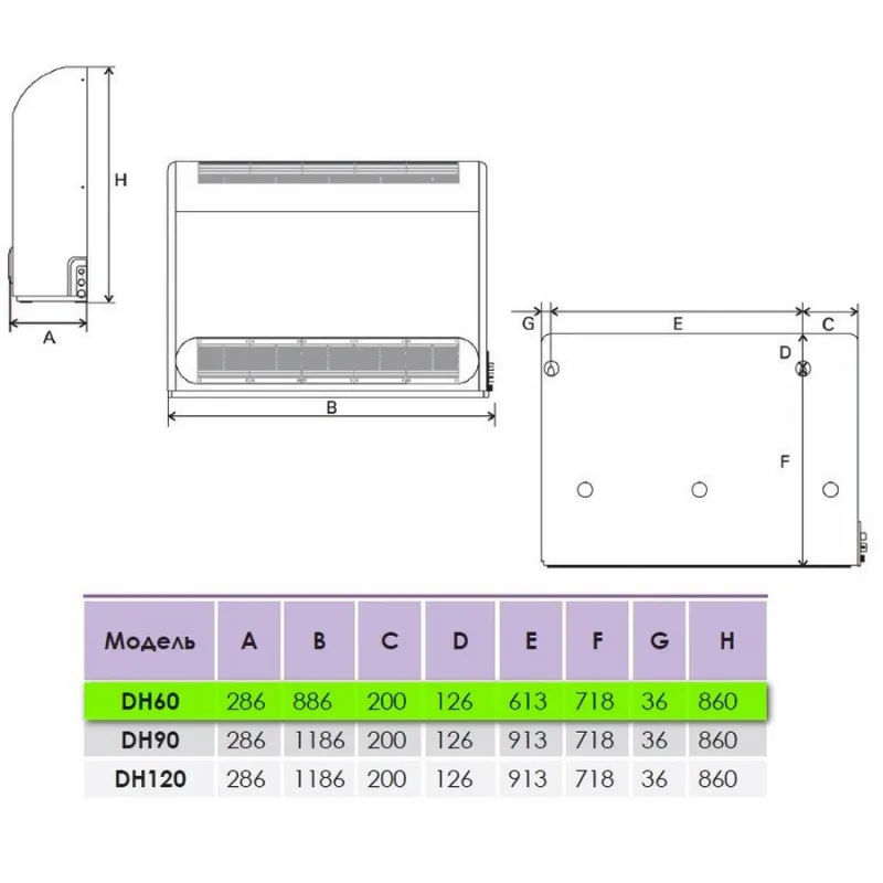 - дисплей, авторозморожування, вбудований гігростат, повітряний фільтр, дренаж, регулювання швидкості, таймер вимкнення, пульт ДУ
