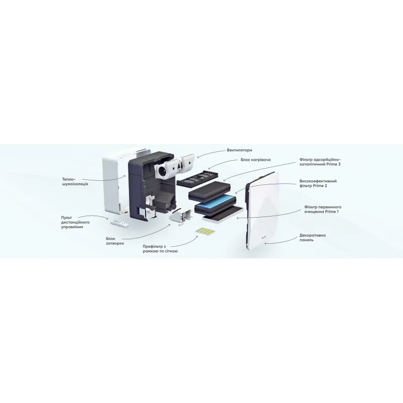 - пульт ДУ, инструкция по эксплуатации, крепеж, очищувач повітря, фільтр 3 шт., 2 батарейки (ААА), кабель живлення