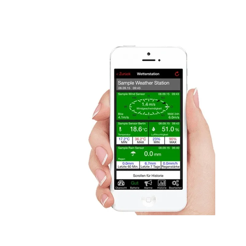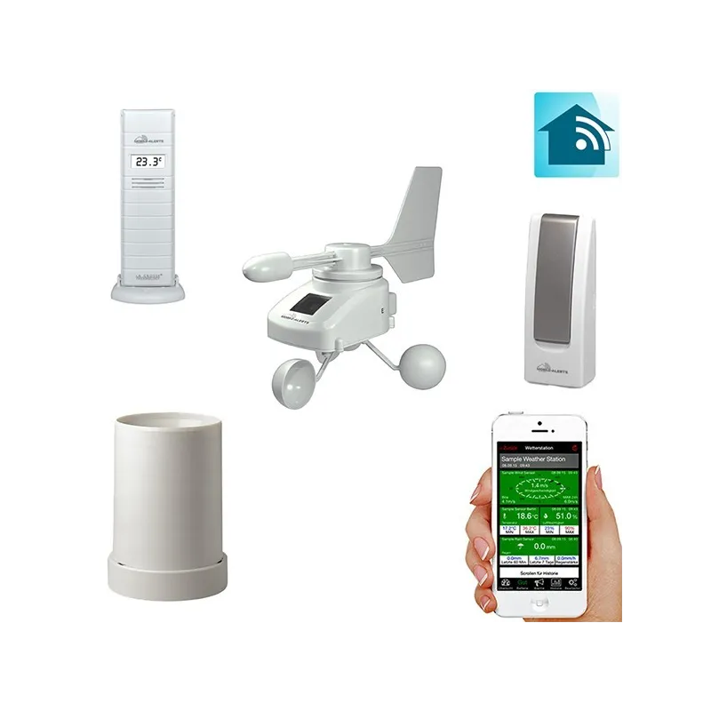 - вологість внутрішня, температура внутрішня, температура зовнішня, вологість зовнішня, швидкість вітру, кількість опадів, напрямок вітру, графік тиску